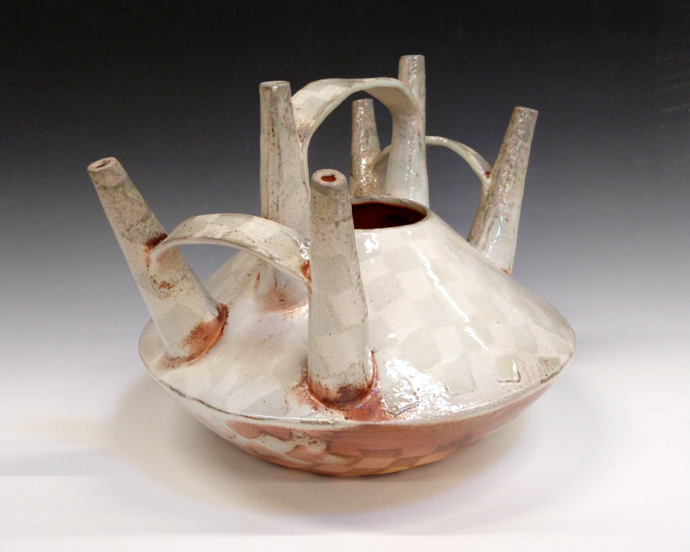 For Spouts and Bridges (2025), I use contemporary ceramic techniques to reinterpret “pre-Columbian” gestures, like double-spout-and-bridge vessels (Nazca). By multiplying these gestures on a single pot, I’m creating futuristic forms whose function becomes increasingly complex and symbolic.