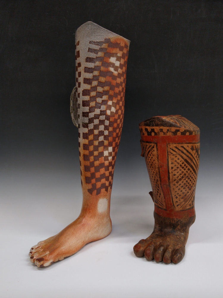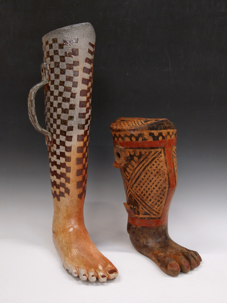 In Los dos (Both of Us), I recreate a pre-Columbian leg-shaped effigy vessel using my leg as a model. The original leg effigy is from the Maracaibo Basin, a region inhabited by my indigenous ancestors since time immemorial. When displayed together, the pair stride across time, illustrating an artistic lineage spanning thousands of years.